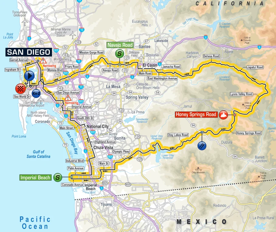 Day 1 of the Amgen Tour of California will begin and end in San Diego on May 15, 2016. The 106 mile route begins in Mission Bay and heads south down to Imperial Beach, then east towards Jamul, and then back to Mission Bay. See below for a map of the entire route.