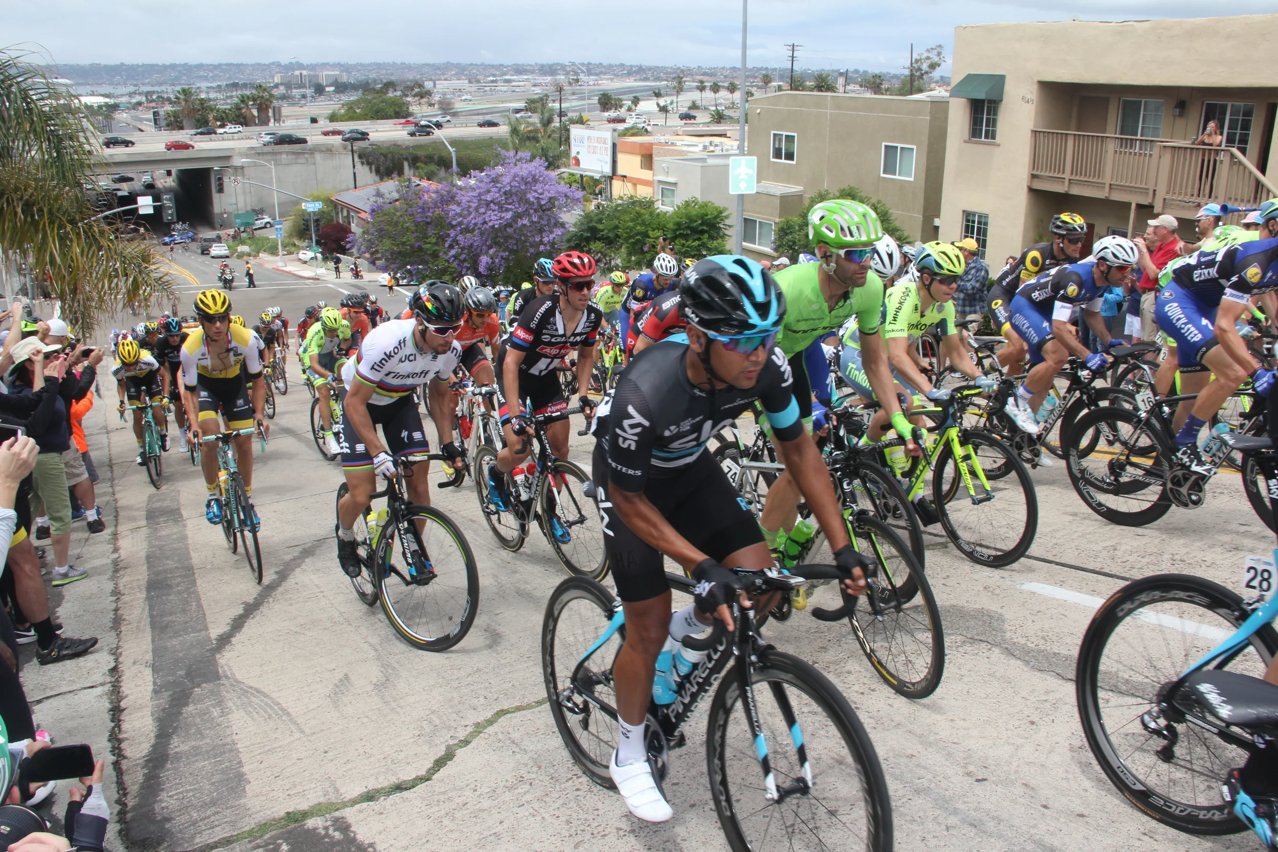 ****Update: Below are a few photos from Stage One towards the top of Laurel Street in San Diego. This is a short but steep climb (18% grade)! San Diego Bicycle Coalition had a nice gathering on the hill to help support the riders.